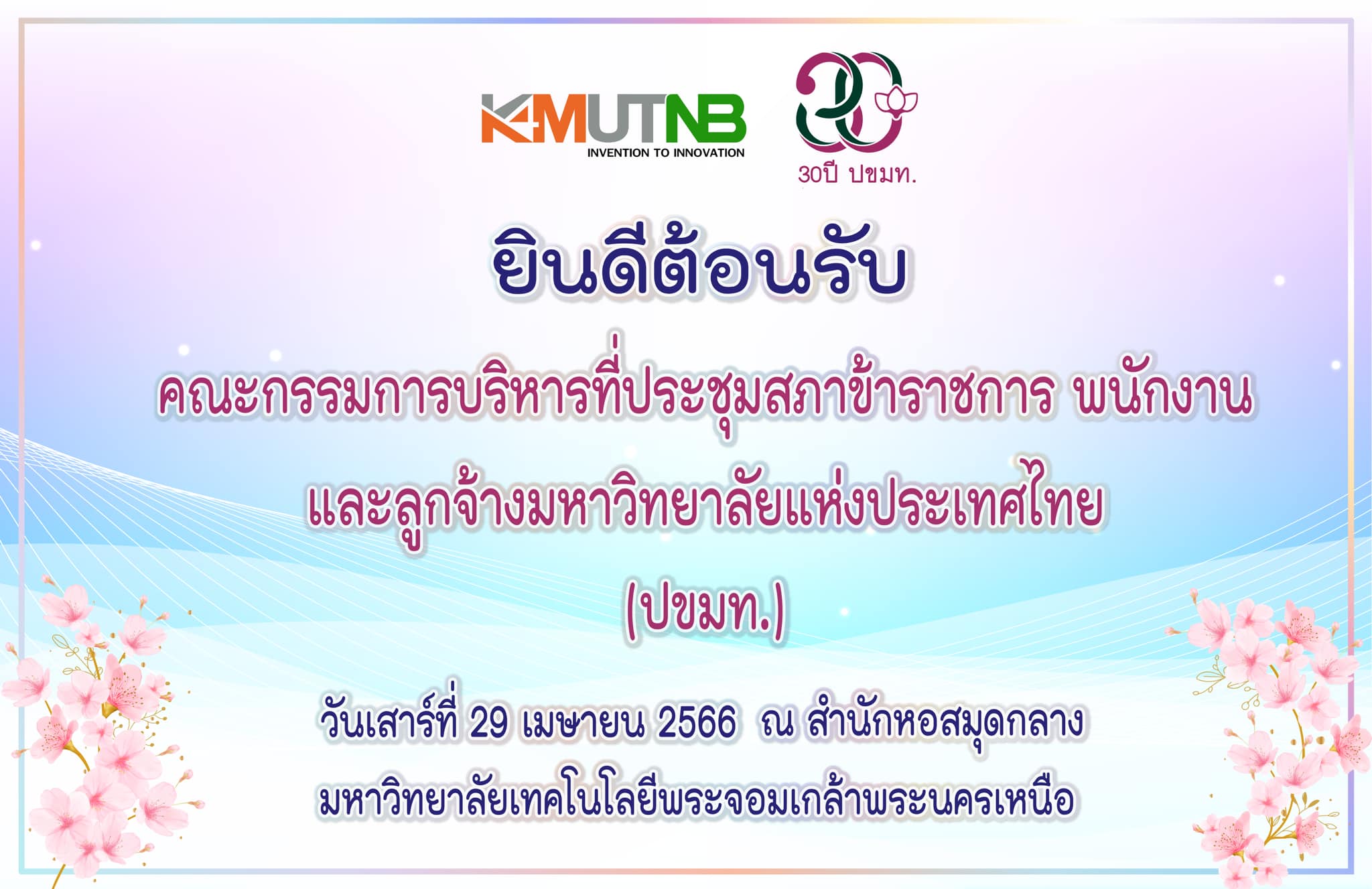 รองศาสตราจารย์ ดร.พยุง มีสัจ ผู้อำนวยการสำนักหอสมุดกลาง ผู้ช่วยศาสตราจารย์ ดร.วาทินี นุ้ยเพียร รองผู้อำนวยการฝ่ายบริหารและกิจการพิเศษ พร้อมด้วยตัวแทนบุคลากรสำนักหอสมุดกลาง ให้การต้อนรับคณะเยี่ยมชม จากที่ประชุมสภาข้าราชการ พนักงาน และลูกจ้างมหาวิทยาลัยแห่งประเทศไทย (ปขมท.) ในโอกาสที่สภาคณาจารย์และพนักงาน มหาวิทยาลัยเทคโนโลยีพระจอมเกล้าพระนครเหนือ เป็นเจ้าภาพจัดการประชุมสมัยสามัญ ครั้งที่ 108 (3/2566) พร้อมนำเสนองานด้านเทคโนโลยีสารสนเทศ นวัตกรรม และบริการของสำนักหอสมุดกลาง ทั้งยังได้เยี่ยมชมหอเกียรติประวัติ มหาวิทยาลัยเทคโนโลยีพระจอมเกล้าพระนครเหนือ เมื่อวันเสาร์ที่ 29 เมษายน 2566 เวลา 14.00-16.00 น.