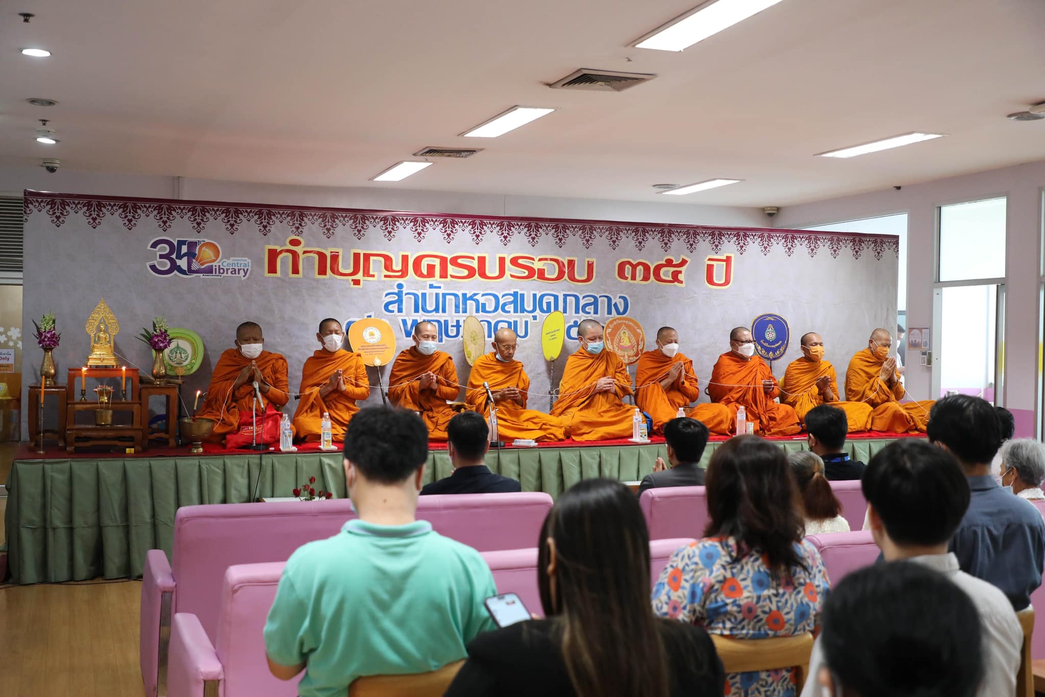 คณะผู้บริหารมหาวิทยาลัยเทคโนโลยีพระจอมเกล้าพระนครเหนือ รองศาสตราจารย์ ดร.พยุง มีสัจ ผู้อำนวยการสำนักหอสมุดกลาง ผู้ช่วยศาสตราจารย์ ดร.วาทินี นุ้ยเพียร รองผู้อำนวยการฝ่ายบริหารและกิจการพิเศษ อาจารย์ ดร.รสจรินทร์ รัตนสุนทร รองผู้อำนวยการฝ่ายนวัตกรรมดิจิทัลและทรัพยากรสารสนเทศ และรองศาสตราจารย์ ดร.ฉัตรชาญ ทองจับ ผู้อำนวยการสำนักพัฒนาเทคนิคศึกษา ที่ปรึกษาคณะกรรมการจัดการพลังงานและสิ่งแวดล้อม พร้อมด้วยบุคลากรสำนักหอสมุดกลาง และบุคลากรจากหน่วยงานต่าง ๆ เข้าร่วมงานทำบุญสำนักหอสมุดกลาง มจพ. เนื่องในโอกาสครบรอบการจัดตั้ง 35 ปี เมื่อวันศุกร์ที่ 12 พฤษภาคม 2566 เวลา 10.00-13.00 น.