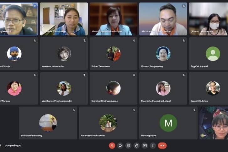 รองศาสตราจารย์ ดร.พยุง มีสัจ ผู้อำนวยการสำนักหอสมุดกลาง ผู้ช่วยศาสตราจารย์ ดร.วาทินี นุ้ยเพียร รองผู้อำนวยการฝ่ายบริหารและกิจการพิเศษ อาจารย์ ดร.รสจรินทร์ รัตนสุนทร รองผู้อำนวยการฝ่ายนวัตกรรมดิจิทัลและทรัพยากรสารสนเทศ พร้อมด้วยคณะกรรมการบริหารสำนักหอสมุดกลาง เข้าร่วมประชุมแลกเปลี่ยนประสบการณ์ และเผยแพร่แนวทางการดำเนินงาน กับคณะเทคโนโลยีและการจัดการอุตสาหกรรม มจพ. วิทยาเขตปราจีนบุรี นำโดย ผู้ช่วยศาสตราจารย์ ดร.กฤษฎากร บุดดาจันทร์ คณบดีคณะเทคโนโลยีและการจัดการอุตสาหกรรม วิทยาเขตปราจีนบุรี พร้อมด้วยคณะผู้บริหาร และบุคลากร ภายใต้โครงการผู้บริหารสัญจร เพื่อสำรวจความต้องการของผู้บริหารคณะต่าง ๆ ที่มีต่อสำนักหอสมุดกลาง ในรูปแบบ Online เมื่อวันที่ 23 กุมภาพันธ์ 2565 เวลา 14.00-15.00 น.