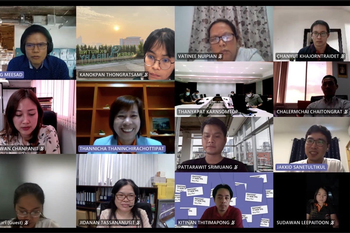รองศาสตราจารย์ ดร.พยุง มีสัจ ผู้อำนวยการสำนักหอสมุดกลาง ผู้ช่วยศาสตราจารย์ ดร.วาทินี นุ้ยเพียร รองผู้อำนวยการฝ่ายบริหารและกิจการพิเศษ อาจารย์ ดร.รสจรินทร์ รัตนสุนทร รองผู้อำนวยการฝ่ายนวัตกรรมดิจิทัลและทรัพยากรสารสนเทศ พร้อมด้วยคณะกรรมการบริหารสำนักหอสมุดกลาง เข้าร่วมประชุมแลกเปลี่ยนประสบการณ์ และเผยแพร่แนวทางการดำเนินงาน กับคณะวิศวกรรมศาสตร์และเทคโนโลยี มจพ. วิทยาเขตระยอง นำโดย ผู้ช่วยศาสตราจารย์ ดร.ธวัชชัย วงศ์ช่าง คณบดีคณะวิศวกรรมศาสตร์และเทคโนโลยี วิทยาเขตระยอง พร้อมด้วยคณะผู้บริหาร และบุคลากร ภายใต้โครงการผู้บริหารสัญจร เพื่อสำรวจความต้องการของผู้บริหารคณะต่าง ๆ ที่มีต่อสำนักหอสมุดกลาง ในรูปแบบ Online เมื่อวันที่ 23 กุมภาพันธ์ 2565 เวลา 16.30-17.30 น.