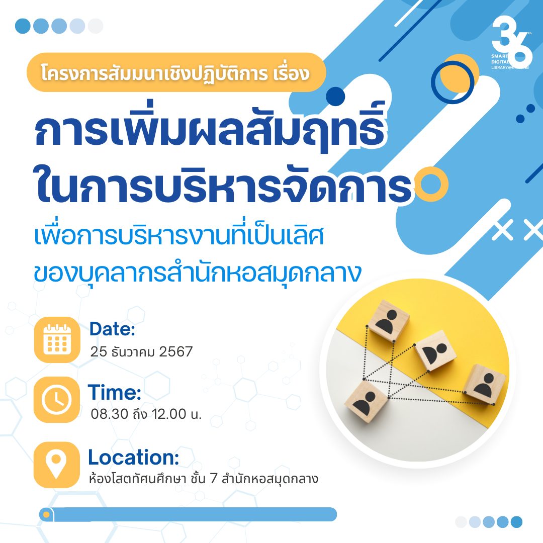 รองศาสตราจารย์ ดร.พยุง มีสัจ ผู้อำนวยการสำนักหอสมุดกลาง ผู้ช่วยศาสตราจารย์ ดร.วาทินี นุ้ยเพียร รองผู้อำนวยการฝ่ายบริหารและกิจการพิเศษ อาจารย์ ดร.รสจรินทร์ รัตนสุนทร รองผู้อำนวยการฝ่ายนวัตกรรมดิจิทัลและทรัพยากรสารสนเทศ พร้อมด้วยบุคลากรสำนักหอสมุดกลาง เข้าร่วมโครงการสัมมนาเชิงปฏิบัติการ เรื่อง การเพิ่มผลสัมฤทธิ์ในการบริหารจัดการเพื่อการบริหารงานที่เป็นเลิศของบุคลากรสำนักหอสมุดกลาง ณ ห้องโสตทัศนศึกษา ชั้น 7 เมื่อวันพุธที่ 25 ธันวาคม 2567 เวลา 08.30-12.00 น. โดยมีวัตถุประสงค์เพื่อให้บุคลากรมีความรู้ ความเข้าใจ พร้อมทั้งแลกเปลี่ยนเรียนรู้ เรื่อง การดำเนินงานตามแผนยุทธศาสตร์สำนักหอสมุดกลาง แผนการดำเนินงานด้านการบริหารจัดการห้องสมุดสีเขียว รวมไปถึงเกณฑ์รางวัลคุณภาพแห่งชาติ (Thailand Quality Award - TQA) เพื่อพัฒนาการทำงานที่มุ่งสู่ความเป็นเลิศ#SDG4 #SDG8 #SDG16