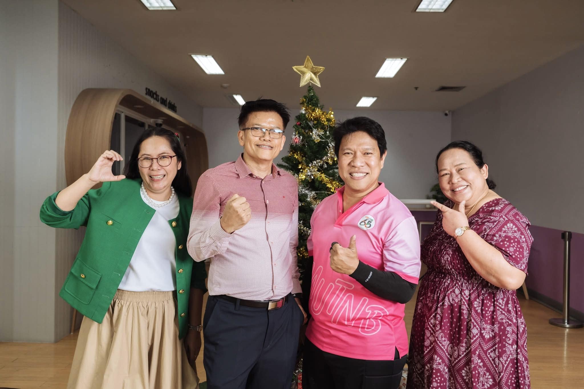 Merry Christmas and Happy New Year 2025รองศาสตราจารย์ ดร.พยุง มีสัจ ผู้อำนวยการสำนักหอสมุดกลาง ผู้ช่วยศาสตราจารย์ ดร.วาทินี นุ้ยเพียร รองผู้อำนวยการฝ่ายบริหารและกิจการพิเศษ อาจารย์ ดร.รสจรินทร์ รัตนสุนทร รองผู้อำนวยการฝ่ายนวัตกรรมดิจิทัลและทรัพยากรสารสนเทศ และรองศาสตราจารย์ ดร.ฉัตรชาญ ทองจับ ผู้อำนวยการสำนักพัฒนาเทคนิคศึกษา พร้อมด้วยบุคลากร และแม่บ้านสำนักหอสมุดกลาง เข้าร่วมงานเลี้ยงปีใหม่ 2568 สำนักหอสมุดกลาง เมื่อวันพุธที่ 25 ธันวาคม 2567 เวลา 12.00-15.00 น. ในโอกาสนี้ คณะผู้บริหารได้ร่วมอวยพรปีใหม่แก่บุคลากรสำนักหอสมุดกลาง รับประทานอาหารกลางวันร่วมกัน พร้อมสนุกสนานกับกิจกรรมจับฉลากแจกของขวัญปีใหม่ Karaoke และร่วมถ่ายภาพ Photo Booth เป็นที่ระลึก#SDG3 #SDG8 #SDG16