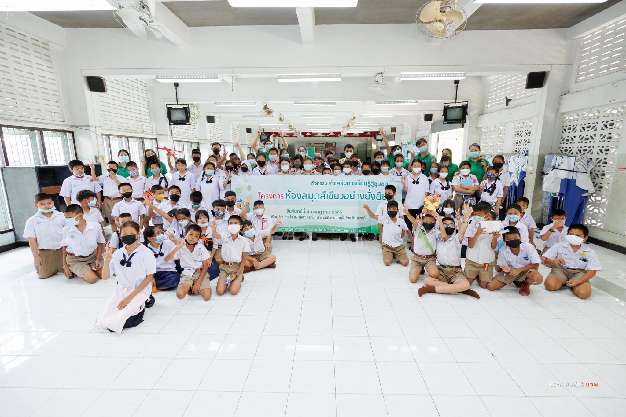 อาจารย์ ดร.รสจรินทร์ รัตนสุนทร รองผู้อำนวยการฝ่ายนวัตกรรมดิจิทัลและทรัพยากรสารสนเทศ พร้อมด้วยตัวแทนบุคลากรสำนักหอสมุดกลาง จัดโครงการห้องสมุดสีเขียวอย่างยั่งยืน ภายใต้คณะกรรมการจัดการพลังงานและสิ่งแวดล้อม ดำเนินกิจกรรมส่งเสริมการเรียนรู้สู่ชุมชน โดยการจัดมุมสีเขียวในห้องสมุดของโรงเรียน รวมไปถึงให้ความรู้ด้านการประหยัดไฟ ประหยัดน้ำ การคัดแยกขยะ และมีกิจกรรมตอบคำถามชิงรางวัล ณ โรงเรียนวัดปากน้ำ (พิบูลสงคราม) อำเภอเมือง จังหวัดนนทบุรี เมื่อวันจันทร์ที่ 4 กรกฎาคม 2565 เวลา 09.00-12.00 น.