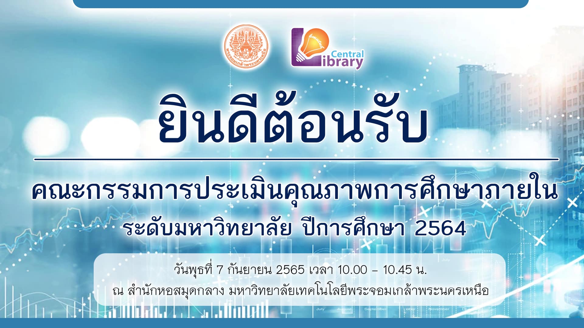 รองศาสตราจารย์ ดร.พยุง มีสัจ ผู้อำนวยการสำนักหอสมุดกลาง ผู้ช่วยศาสตราจารย์ ดร.วาทินี นุ้ยเพียร รองผู้อำนวยการฝ่ายบริหารและกิจการพิเศษ อาจารย์ ดร.รสจรินทร์ รัตนสุนทร รองผู้อำนวยการฝ่ายนวัตกรรมดิจิทัลและทรัพยากรสารสนเทศ พร้อมด้วยตัวแทนบุคลากรสำนักหอสมุดกลาง ให้การต้อนรับคณะกรรมการประเมินคุณภาพการศึกษาภายใน ระดับมหาวิทยาลัย ปีการศึกษา 2564 พร้อมทั้งนำเยี่ยมชมอาคาร รวมไปถึงนวัตกรรมในการให้บริการ เมื่อวันพุธที่ 7 กันยายน 2565 เวลา 10.00-10.45 น. โดยได้รับเกียรติจาก คณะกรรมการประเมินคุณภาพการศึกษาภายใน อาจารย์ ดร.สุชาติ เมืองแก้ว ประธานกรรมการ จากมหาวิทยาลัยนเรศวร, ผู้ช่วยศาสตราจารย์ ดร.นิคม มูลเมือง จากมหาวิทยาลัยแม่โจ้, รองศาสตราจารย์ ดร.มณฑิชา พุดซาคำ จากมหาวิทยาลัยสุโขทัยธรรมาธิราช, รองศาสตราจารย์ ดร.ชนศักดิ์ บ่ายเที่ยง และรองศาสตราจารย์ ดร.ศจีมาจ ณ วิเชียร