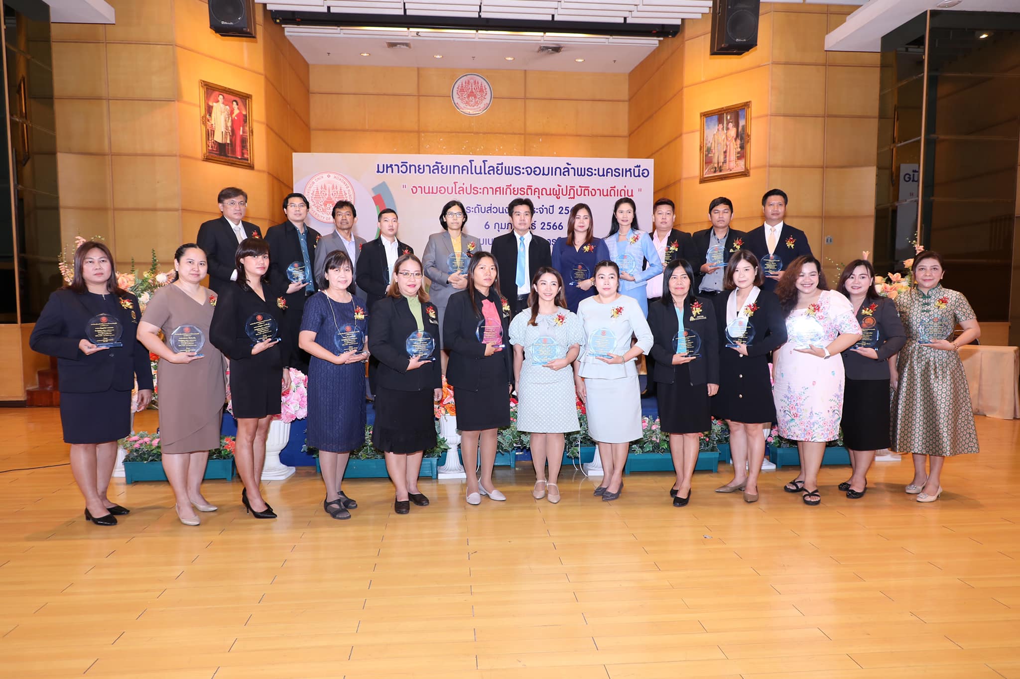 รองศาสตราจารย์ ดร.พยุง มีสัจ ผู้อำนวยการสำนักหอสมุดกลาง พร้อมด้วยตัวแทนบุคลากรสำนักหอสมุดกลาง มจพ. เข้าร่วมงานมอบโล่ประกาศเกียรติคุณผู้ปฏิบัติงานดีเด่นระดับส่วนงาน ประจำปี 2565 ณ หอประชุมเบญจรัตน์ อาคารนวมินทรราชินี มจพ. เมื่อวันจันทร์ที่ 6 กุมภาพันธ์ 2566 เวลา 09.00-12.00 น. และในโอกาสนี้ ขอแสดงความยินดีกับ คุณจีระพล คุ่มเคี่ยม นักวิชาการคอมพิวเตอร์ชำนาญการ หัวหน้าฝ่ายเทคโนโลยีสารสนเทศและนวัตกรรมทางการศึกษา ที่ได้รับรางวัลผู้ปฏิบัติงานดีเด่น ระดับส่วนงาน สายสนับสนุนวิชาการ ประจำปี 2565 โดยได้รับเกียรติจาก ศาสตราจารย์ ดร.สุชาติ เซี่ยงฉิน อธิการบดีมหาวิทยาลัยเทคโนโลยีพระจอมเกล้าพระนครเหนือ เป็นผู้มอบรางวัล