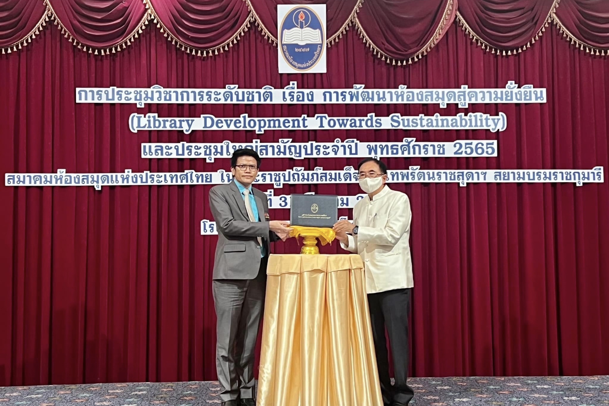รองศาสตราจารย์ ดร.พยุง มีสัจ ผู้อำนวยการสำนักหอสมุดกลาง รองศาสตราจารย์ ดร.ฉัตรชาญ ทองจับ ผู้อำนวยการสำนักพัฒนาเทคนิคศึกษา ที่ปรึกษาคณะกรรมการจัดการพลังงานและสิ่งแวดล้อม พร้อมด้วยตัวแทนบุคลากรสำนักหอสมุดกลาง เข้าร่วมการประชุมทางวิชาการระดับชาติ เรื่อง การพัฒนาห้องสมุดสู่ความยั่งยืน (Library Development Towards Sustainability) และประชุมใหญ่สามัญประจำปี พุทธศักราช 2565 ณ โรงแรมแอมบาสซาเดอร์ สุขุมวิท 11 กรุงเทพมหานคร เมื่อวันศุกร์ที่ 31 มีนาคม 2566 เวลา 08.30-16.30 น. และได้รับเกียรติจาก นายวีระ โรจน์พจนรัตน์ อดีตรัฐมนตรีว่าการกระทรวงวัฒนธรรม เป็นผู้มอบเกียรติบัตร ในโอกาสที่สำนักหอสมุดกลาง มหาวิทยาลัยเทคโนโลยีพระจอมเกล้าพระนครเหนือ ได้ผ่านการประเมินคุณภาพห้องสมุดสีเขียว ประจำปี 2565 ของสมาคมห้องสมุดแห่งประเทศไทย ในพระราชูปถัมภ์สมเด็จพระเทพรัตนราชสุดาฯ สยามบรมราชกุมารี