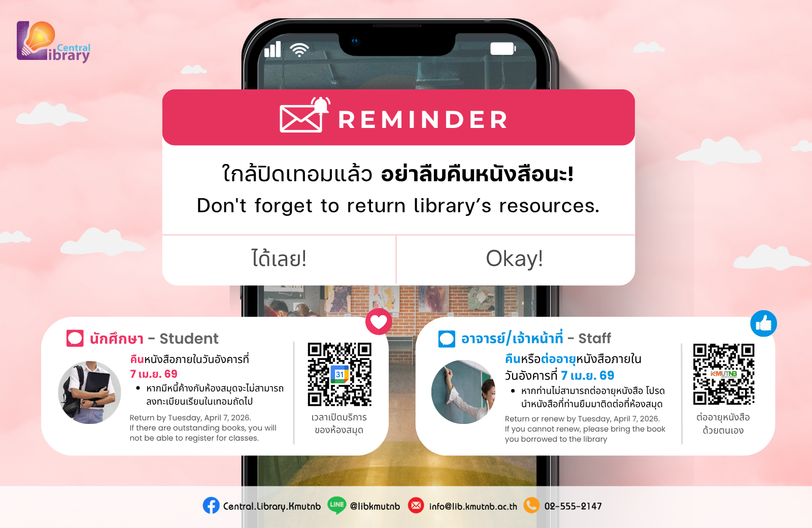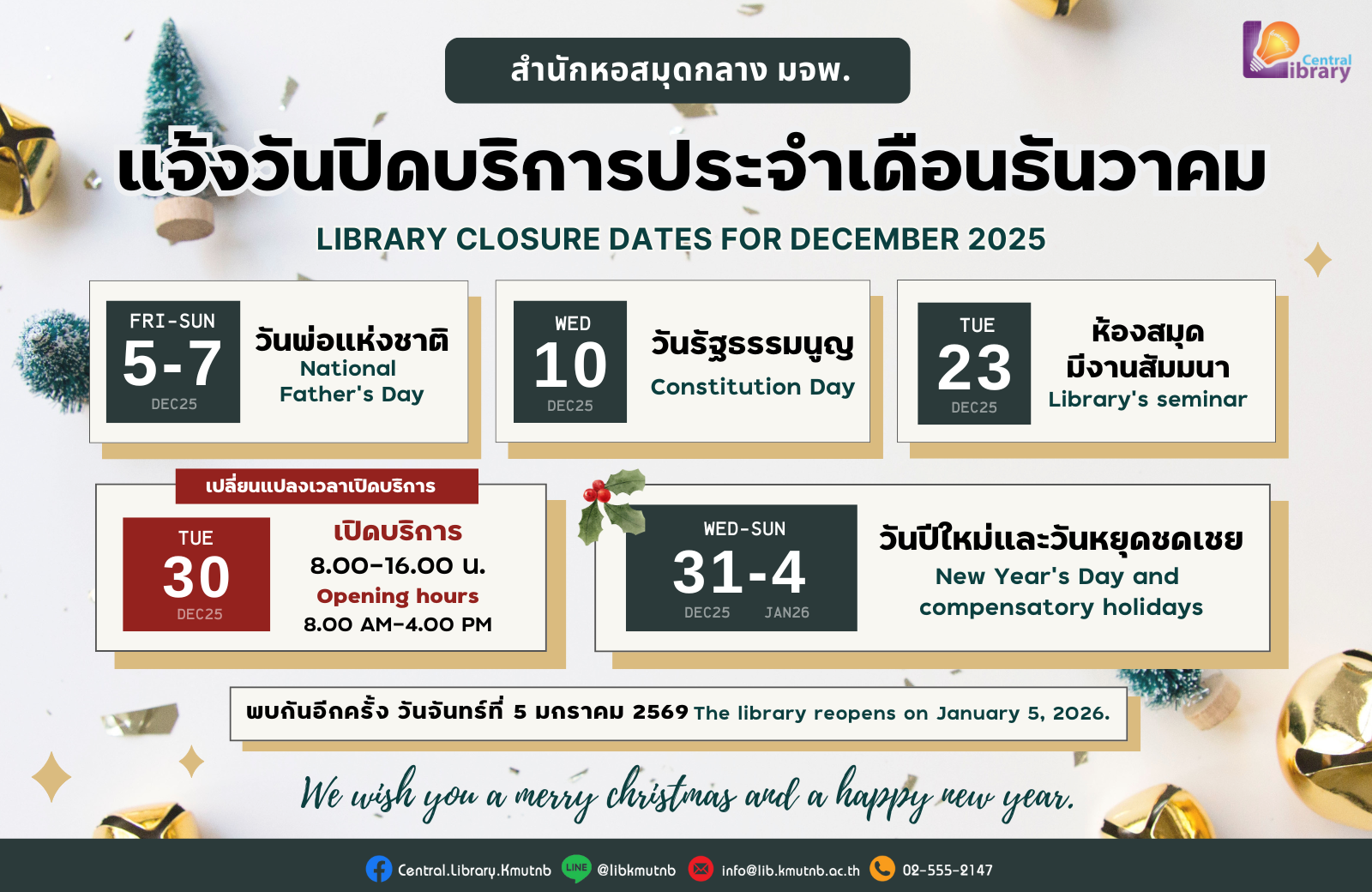 สำนักหอสมุดกลาง จะดำเนินการจัดเก็บข้อมูลส่วนบุคคลของท่านเท่าที่จำเป็นต่อการดำเนินงาน ภายใต้นโยบายคุ้มครองความเป็นส่วนตัว สำนักหอสมุดกลาง รวมถึงตามกฎหมายที่เกี่ยวข้อง และประมวลผลข้อมูลส่วนบุคคลของท่าน เพื่อดำเนินการตามวัตถุประสงค์ของสำนักหอสมุดกลางฯ อ่านเพิ่มเติม