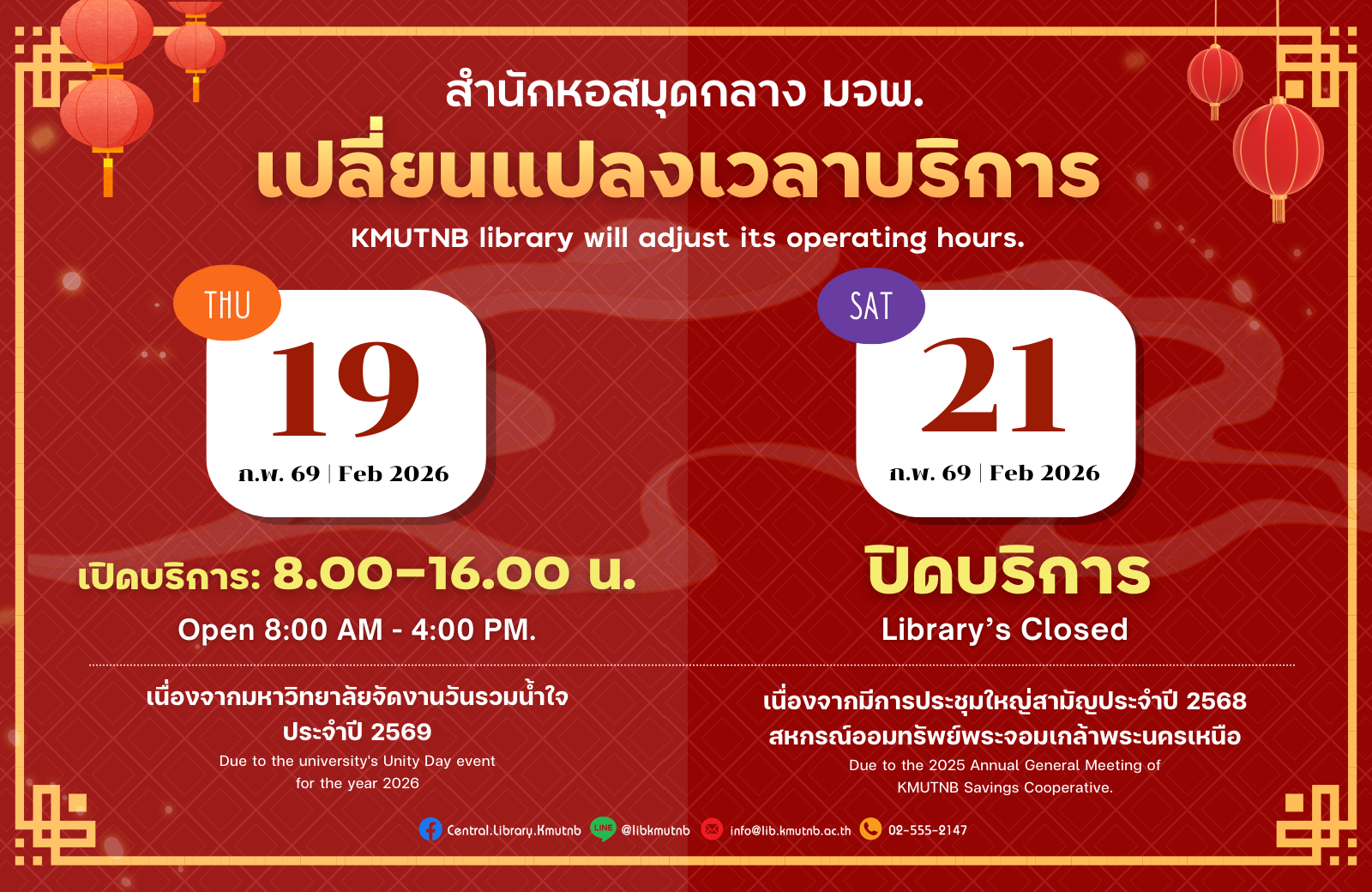 สำนักหอสมุดกลาง จะดำเนินการจัดเก็บข้อมูลส่วนบุคคลของท่านเท่าที่จำเป็นต่อการดำเนินงาน ภายใต้นโยบายคุ้มครองความเป็นส่วนตัว สำนักหอสมุดกลาง รวมถึงตามกฎหมายที่เกี่ยวข้อง และประมวลผลข้อมูลส่วนบุคคลของท่าน เพื่อดำเนินการตามวัตถุประสงค์ของสำนักหอสมุดกลางฯ อ่านเพิ่มเติม