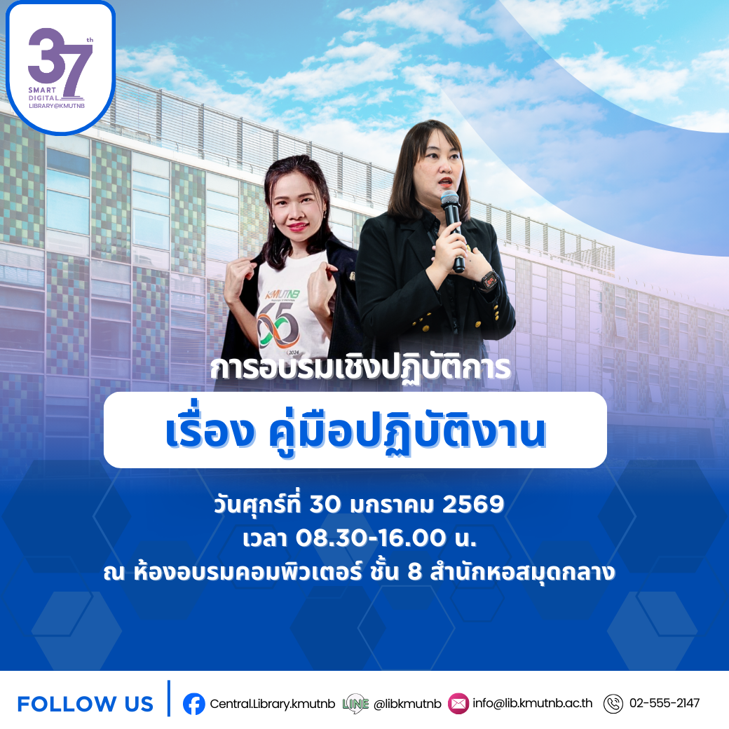รองศาสตราจารย์ ดร.พยุง มีสัจ ผู้อำนวยการสำนักหอสมุดกลาง พร้อมด้วยบุคลากรสำนักหอสมุดกลาง เข้าร่วมการอบรมเชิงปฏิบัติการ เรื่อง คู่มือปฏิบัติงาน ภายใต้โครงการอบรมเชิงปฏิบัติการ เรื่อง เทคนิคการจัดทำผลงาน คู่มือปฎิบัติงาน งานวิเคราะห์ งานสังเคราะห์ และวิจัย เพื่อพัฒนาความก้าวหน้าในสายอาชีพของบุคลากร และเพิ่มประสิทธิภาพของกระบวนการทำงาน โดยมีวัตถุประสงค์เพื่อให้บุคลากรมีความรู้ ความเข้าใจ ทักษะที่ถูกต้องเกี่ยวกับการจัดทำผลงานประเภทต่าง ๆ และเพื่อเพิ่มพูนทักษะในการจัดทำผลงาน ณ ห้องอบรมคอมพิวเตอร์ ชั้น 8 สำนักหอสมุดกลาง เมื่อวันศุกร์ที่ 30 มกราคม 2569 เวลา 08.30-16.00 น. โดยได้รับเกียรติจาก คุณวรรณพร รุจิพงษ์กุล บุคลากรชำนาญการพิเศษ หัวหน้ากลุ่มงานส่งเสริมและพัฒนาบุคลากร กองบริหารและจัดการทรัพยากรมนุษย์ วิทยากร และคุณรัชนี แดงเสริมศิริ เจ้าหน้าที่บริหารงานทั่วไปชำนาญการพิเศษ กองกลาง สำนักงานอธิการบดี มจพ. ผู้ช่วยวิทยากร