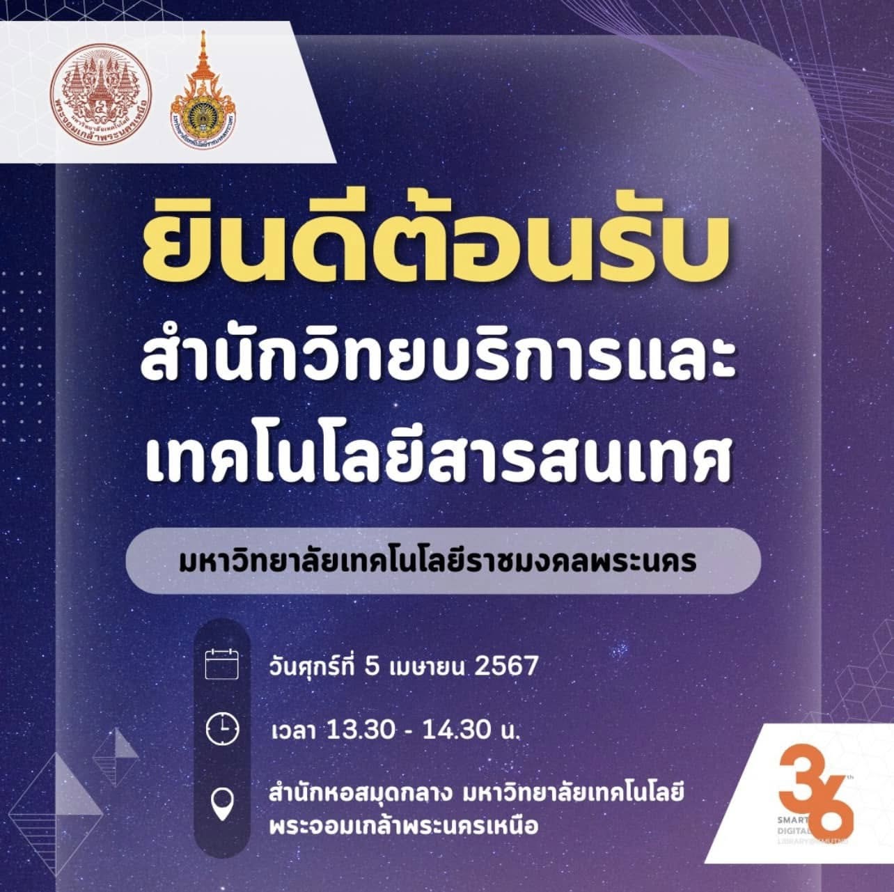 รองศาสตราจารย์ ดร.พยุง มีสัจ ผู้อำนวยการสำนักหอสมุดกลาง ผู้ช่วยศาสตราจารย์ ดร.วาทินี นุ้ยเพียร รองผู้อำนวยการฝ่ายบริหารและกิจการพิเศษ อาจารย์ ดร.รสจรินทร์ รัตนสุนทร รองผู้อำนวยการฝ่ายนวัตกรรมดิจิทัลและทรัพยากรสารสนเทศ พร้อมด้วยตัวแทนบุคลากรสำนักหอสมุดกลาง ให้การต้อนรับคณะผู้บริหารและตัวแทนบุคลากร จากสำนักวิทยบริการและเทคโนโลยีสารสนเทศ มหาวิทยาลัยเทคโนโลยีราชมงคลพระนคร นำโดย ดร.เชาวลิต สมบูรณ์พัฒนากิจ นักวิชาการคอมพิวเตอร์ชำนาญการ ผู้อำนวยการสำนักวิทยบริการและเทคโนโลยีสารสนเทศ ในพิธีลงนามบันทึกความเข้าใจ ระหว่างมหาวิทยาลัยเทคโนโลยีพระจอมเกล้าพระนครเหนือ โดยสำนักหอสมุดกลาง กับมหาวิทยาลัยเทคโนโลยีราชมงคลพระนคร ณ Smart Space @KMUTNB ชั้น 7 สำนักหอสมุดกลาง เมื่อวันศุกร์ที่ 5 เมษายน 2567 เวลา 13.30-14.30 น. ในโอกาสนี้ ได้เยี่ยมชมบรรยากาศภายในสำนักหอสมุดกลาง พร้อมนำเสนองานด้านเทคโนโลยีสารสนเทศ นวัตกรรม และบริการต่าง ๆ#SDG4 #SDG9 #SDG17