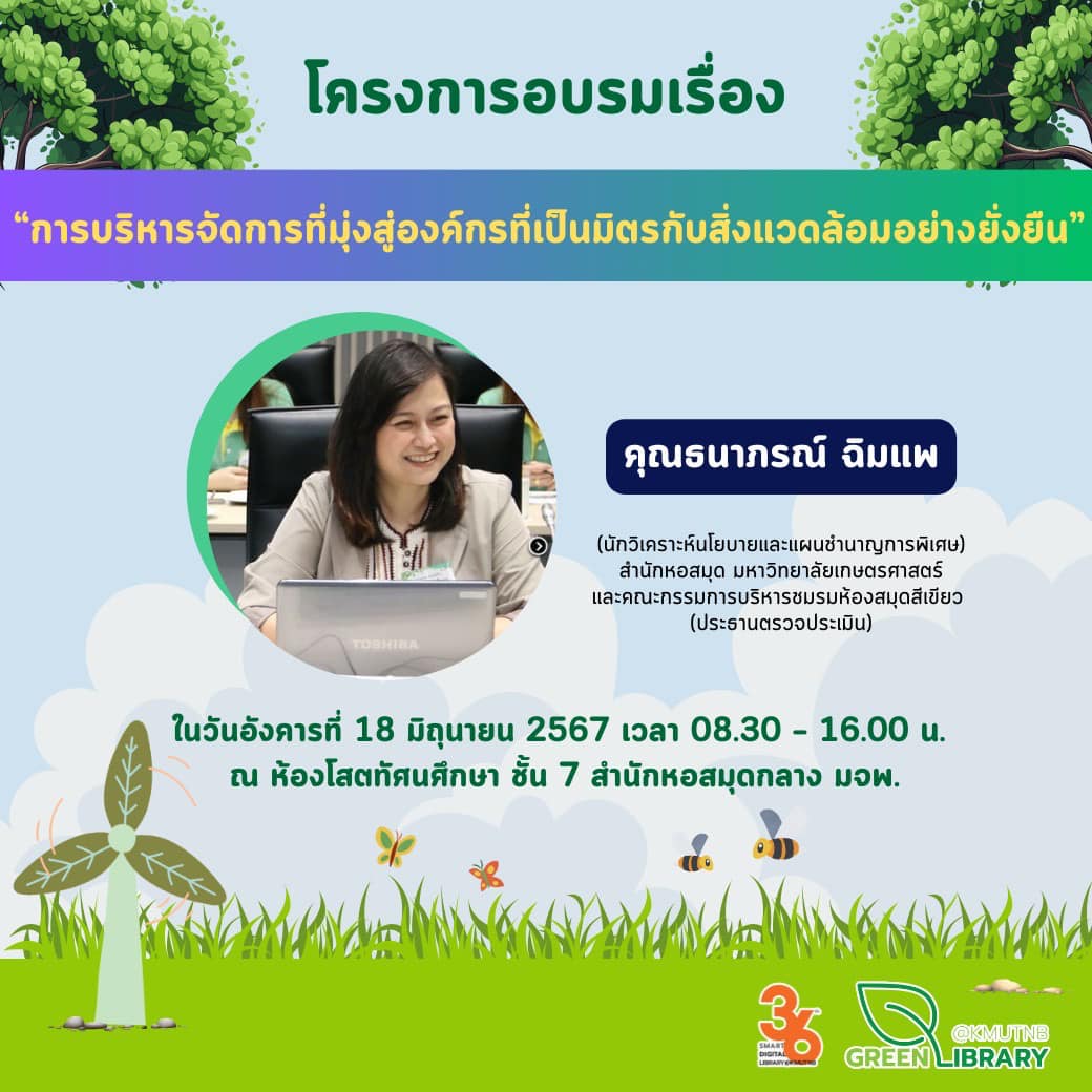 รองศาสตราจารย์ ดร.พยุง มีสัจ ผู้อำนวยการสำนักหอสมุดกลาง ผู้ช่วยศาสตราจารย์ ดร.วาทินี นุ้ยเพียร รองผู้อำนวยการฝ่ายบริหารและกิจการพิเศษ อาจารย์ ดร.รสจรินทร์ รัตนสุนทร รองผู้อำนวยการฝ่ายนวัตกรรมดิจิทัลและทรัพยากรสารสนเทศ พร้อมด้วยบุคลากรสำนักหอสมุดกลาง เข้าร่วมโครงการอบรม เรื่อง การบริหารจัดการที่มุ่งสู่องค์กรที่เป็นมิตรกับสิ่งแวดล้อมอย่างยั่งยืน ณ ห้องโสตทัศนศึกษา ชั้น 7 เมื่อวันอังคารที่ 18 มิถุนายน 2567 เวลา 08.30-16.00 น. โดยได้รับเกียรติจากวิทยากร คุณธนาภรณ์ ฉิมแพ นักวิเคราะห์นโยบายและแผนชำนาญการพิเศษ สำนักหอสมุด มหาวิทยาลัยเกษตรศาสตร์ และคณะกรรมการบริหารชมรมห้องสมุดสีเขียว (ประธานตรวจประเมิน) ในโอกาสนี้ ได้เยี่ยมชมบรรยากาศภายใน และมุมให้บริการต่าง ๆ ของสำนักหอสมุดกลาง ทั้งยังได้ให้ข้อคิดเห็นและแนวทางในการปรับปรุงแก้ไข เพื่อเตรียมความพร้อมเข้ารับการตรวจประเมิน Green Office ต่อไป#SDG4 #SDG7 #SDG12 #SDG13